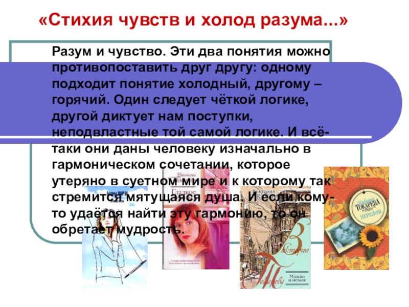 •Почему же мы говорим «стихия чувств» и «холод разума»? Как вы понимаете смысл этих словосочетаний, исходя из того ассоциативного ряда, который мы с вами построили?