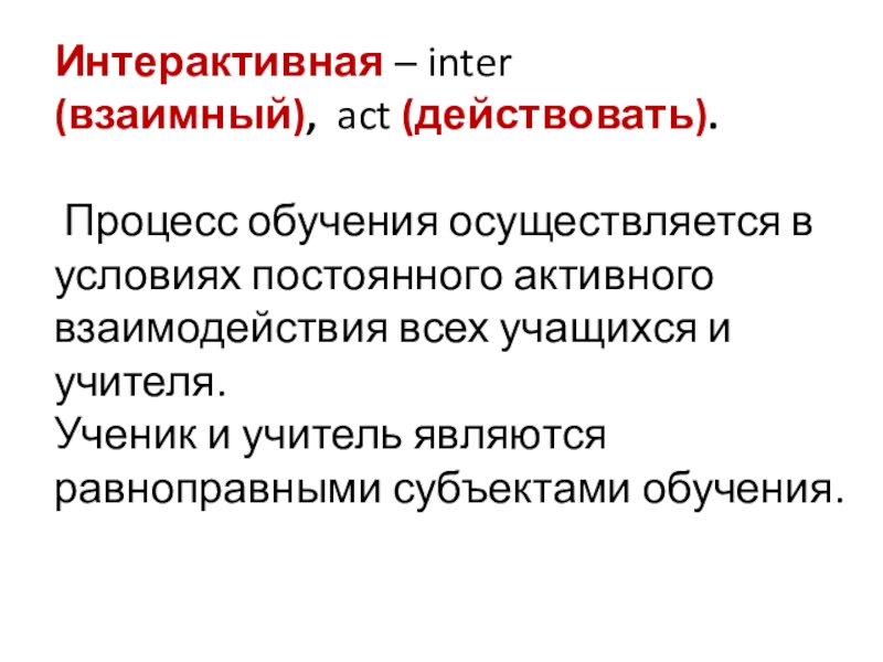 Слайд 6Интерактивная – inter (взаимный), act (действовать).