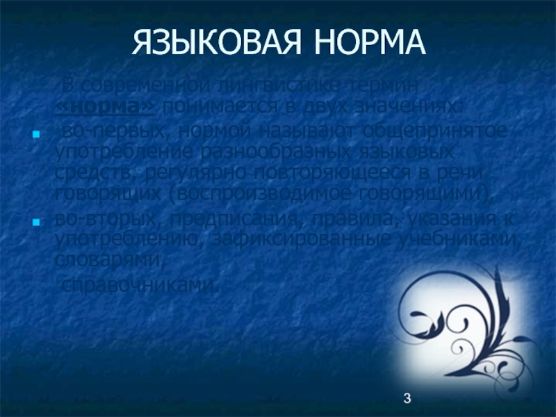 Слайд 3ЯЗЫКОВАЯ НОРМА