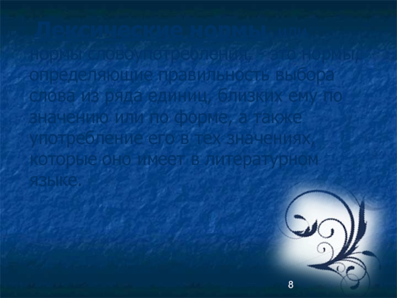 Слайд 8 Лексические нормы, или нормы словоупотребления, - это нормы, определяющие правильность выбора