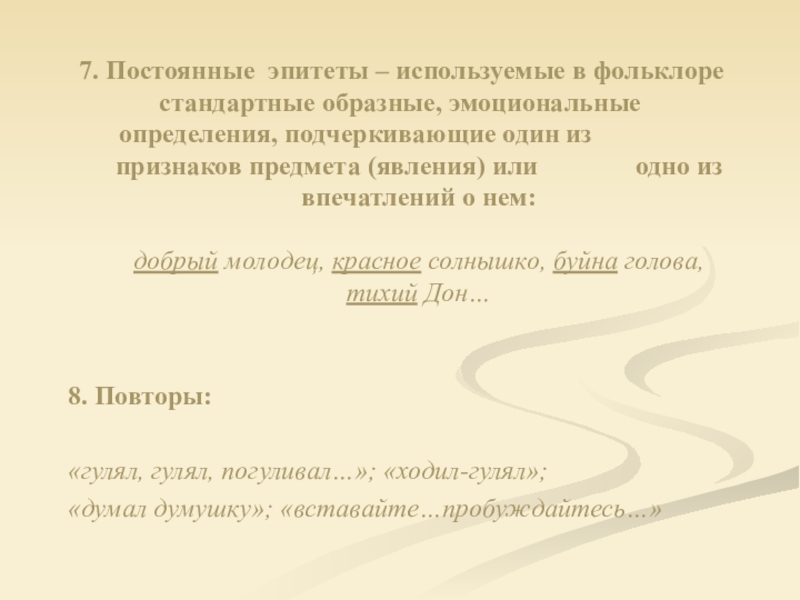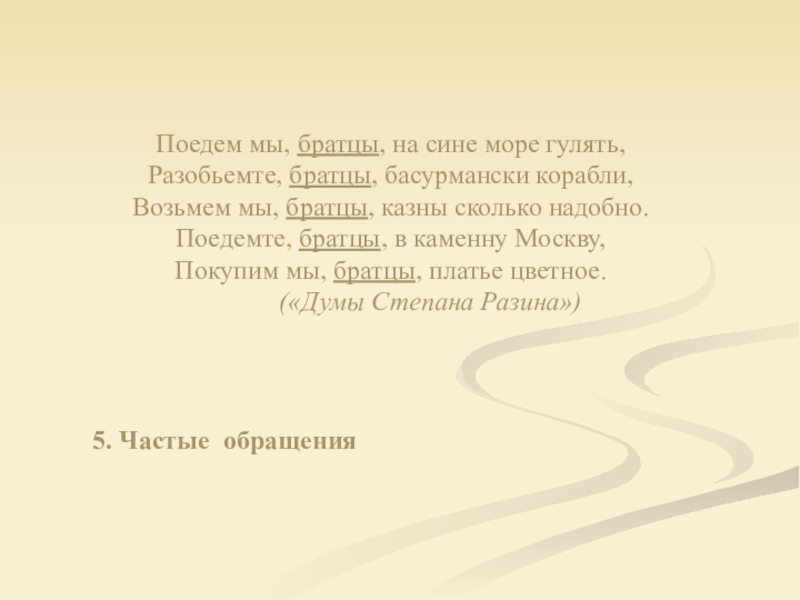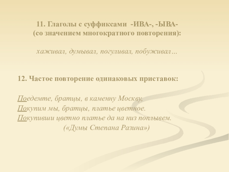 «думал думушку»; «вставайте…пробуждайтесь…»