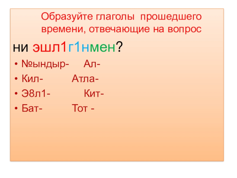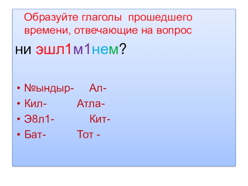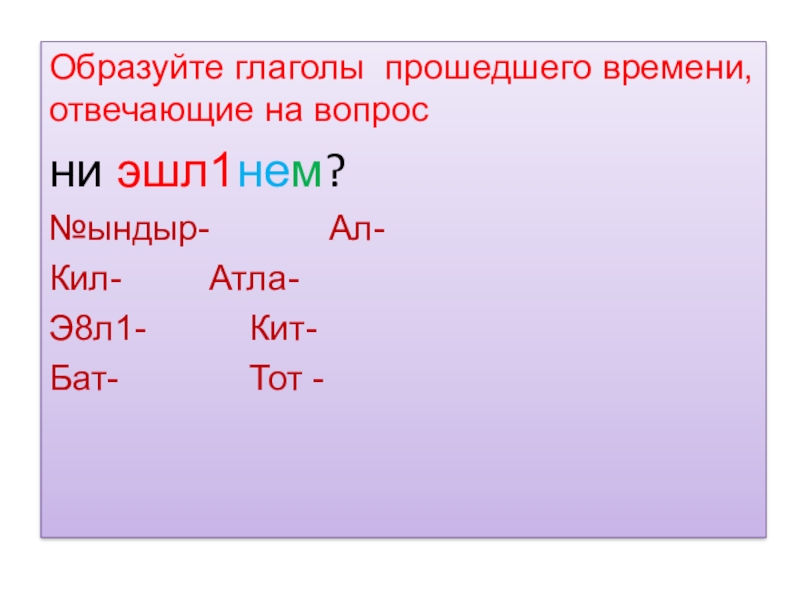 Слайд 11Образуйте глаголы прошедшего времени, отвечающие на вопрос