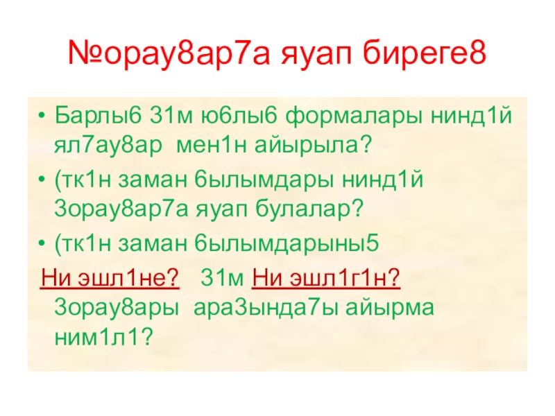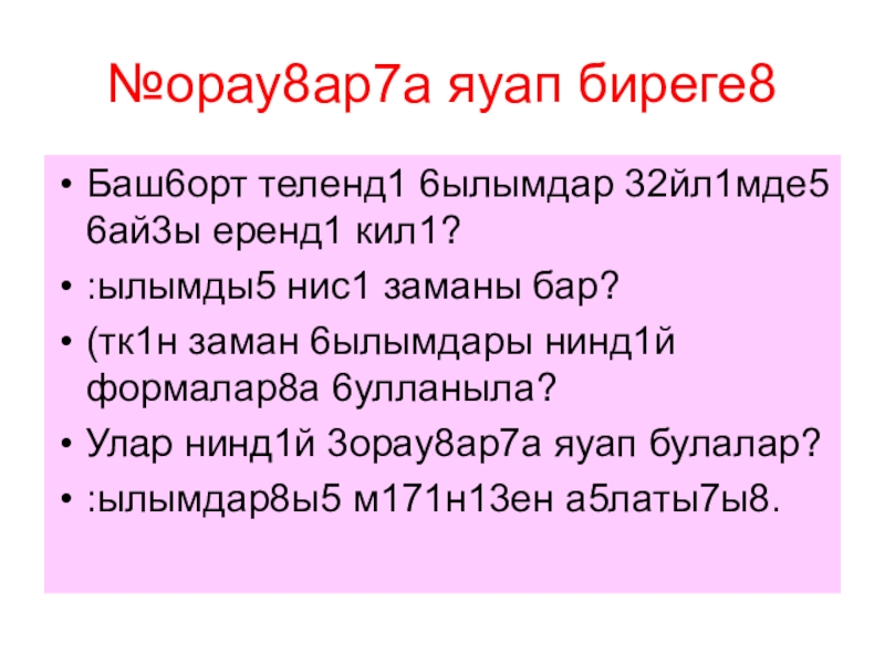 Слайд 24№орау8ар7а яуап биреге8