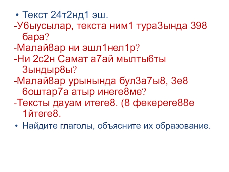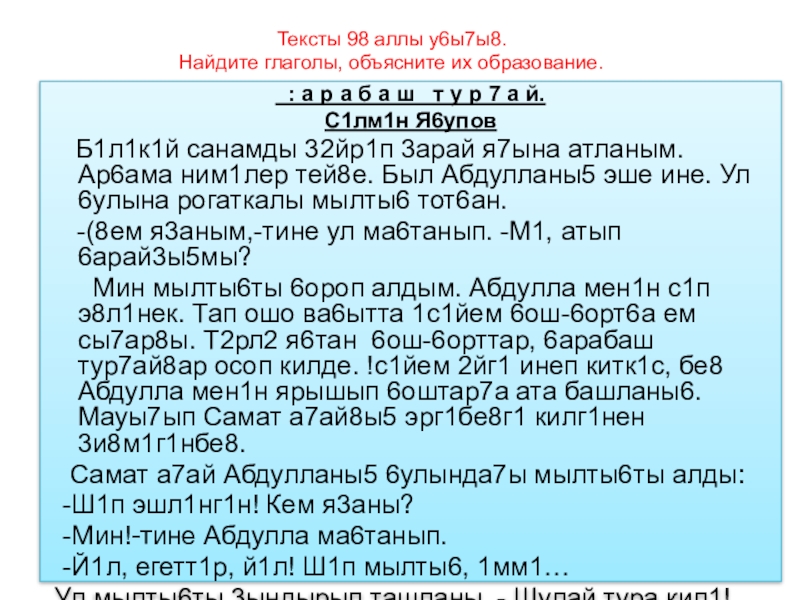 Слайд 18Тексты 98 аллы у6ы7ы8.