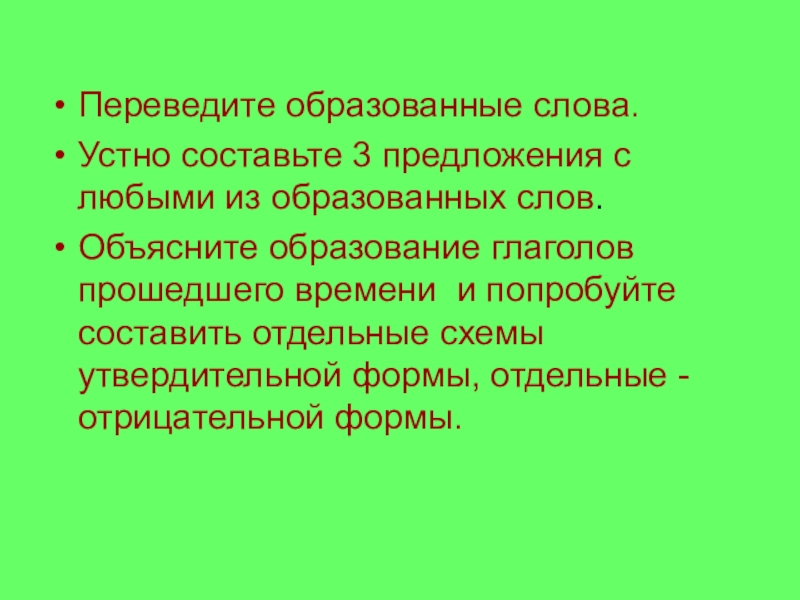 образование глаголов прошедшего времени и попробуйте составить отдельные схемы утвердительной формы, отдельные - отрицательной формы.