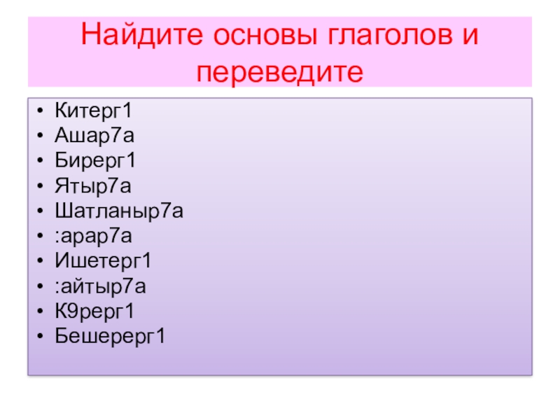 Слайд 5Найдите основы глаголов и переведите