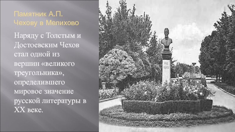 Слайд 61Памятник А.П.Чехову в Мелихово