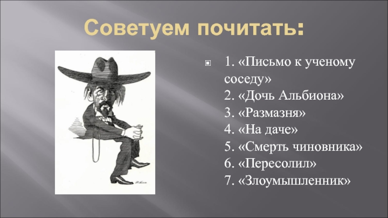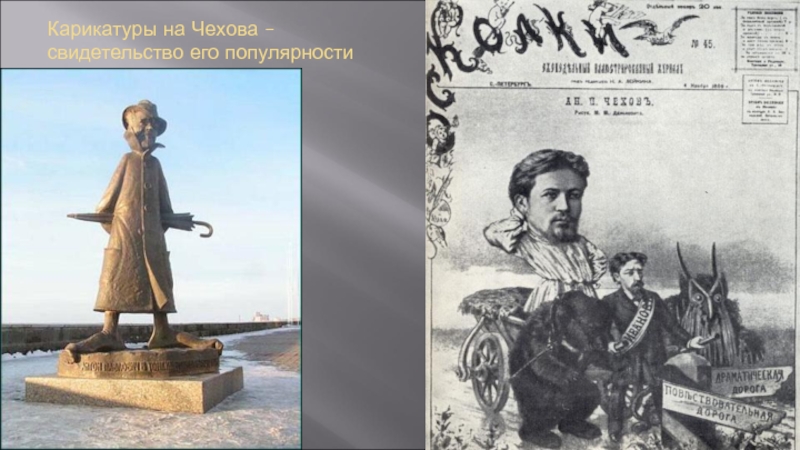Слайд 21Карикатуры на Чехова – свидетельство его популярности
