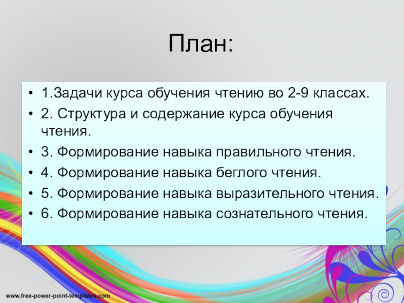 Слайд 51.Задачи курса обучения чтению во 2-9 классах