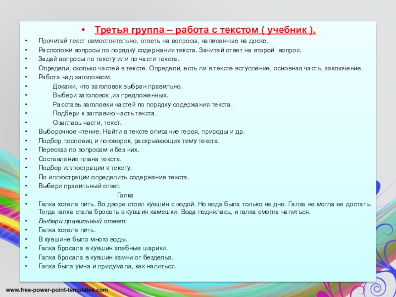 Слайд 18Третья группа – работа с текстом ( учебник ).