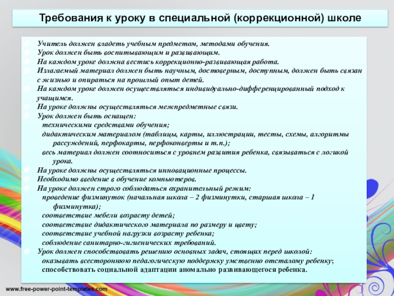 Слайд 8Требования к уроку в специальной (коррекционной) школе