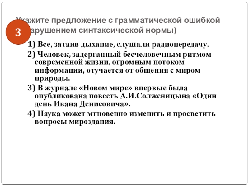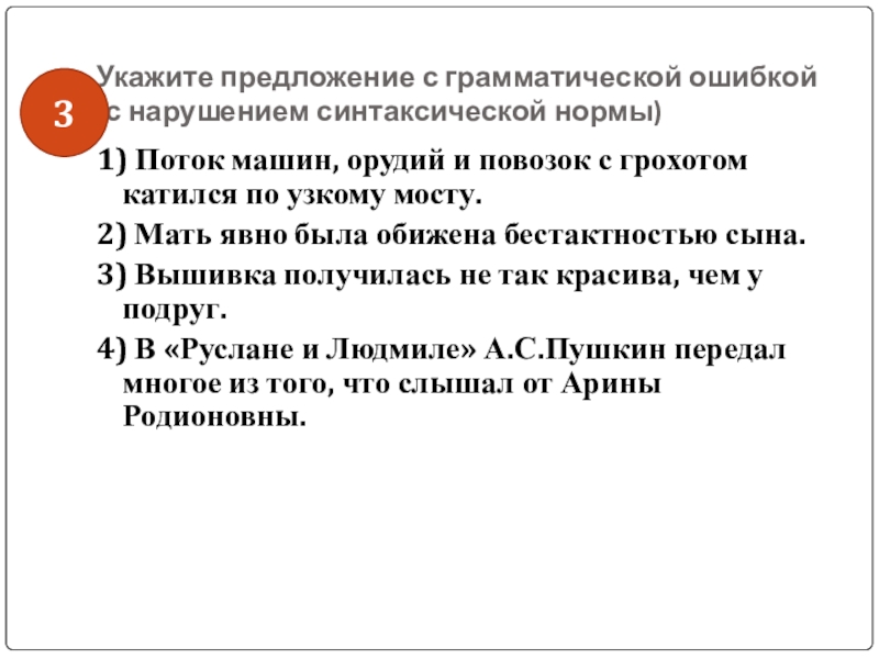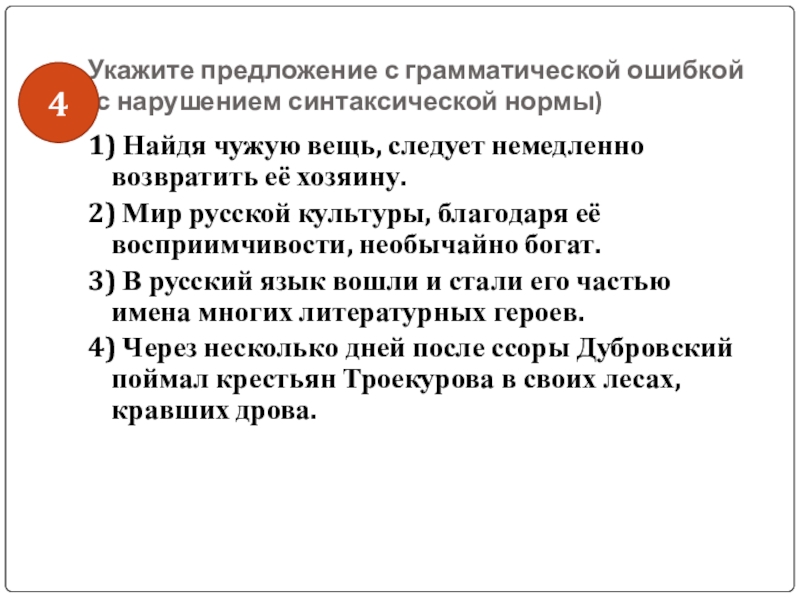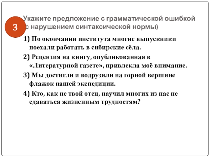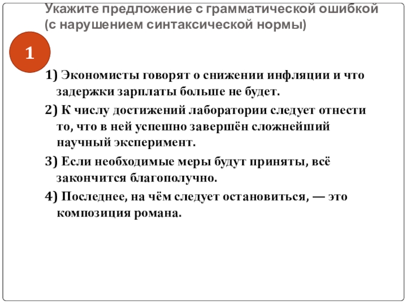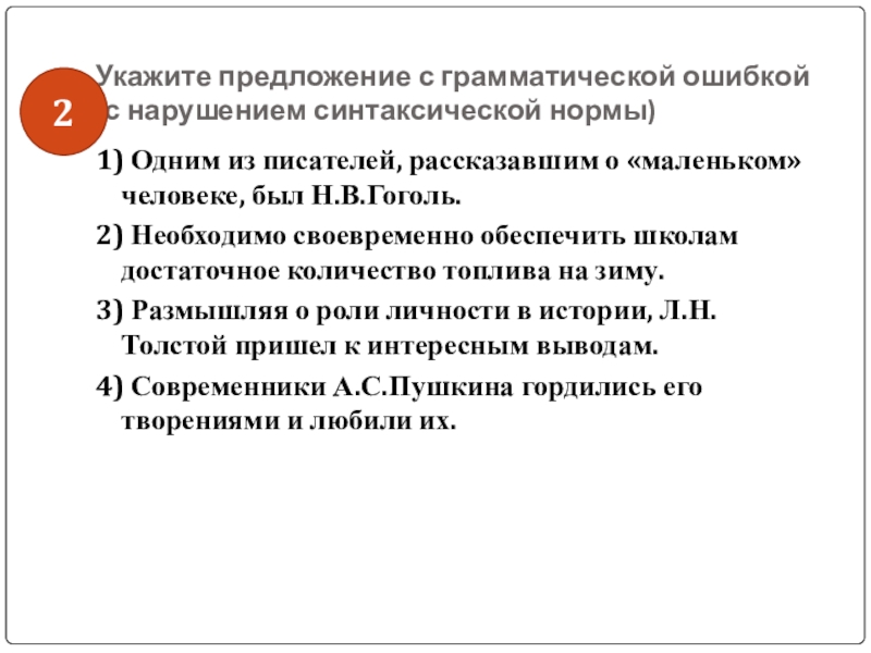 Слайд 46Укажите предложение с грамматической ошибкой