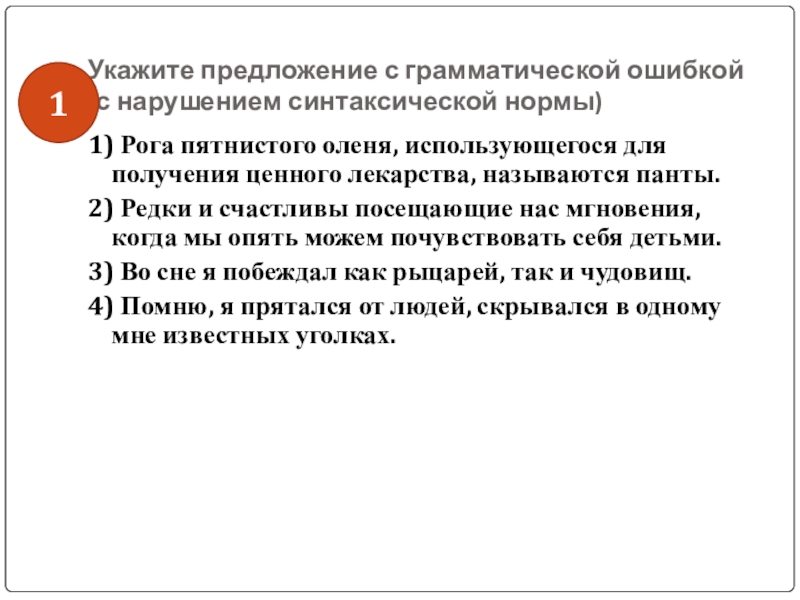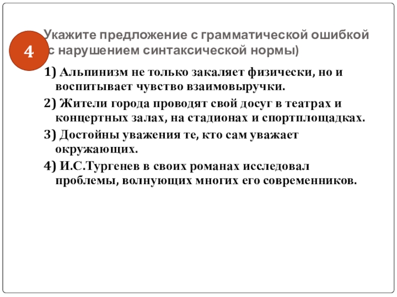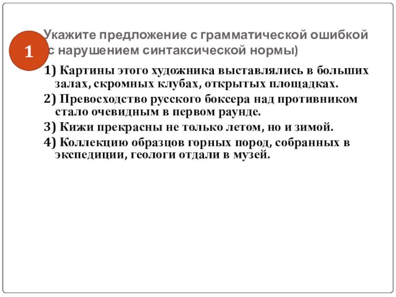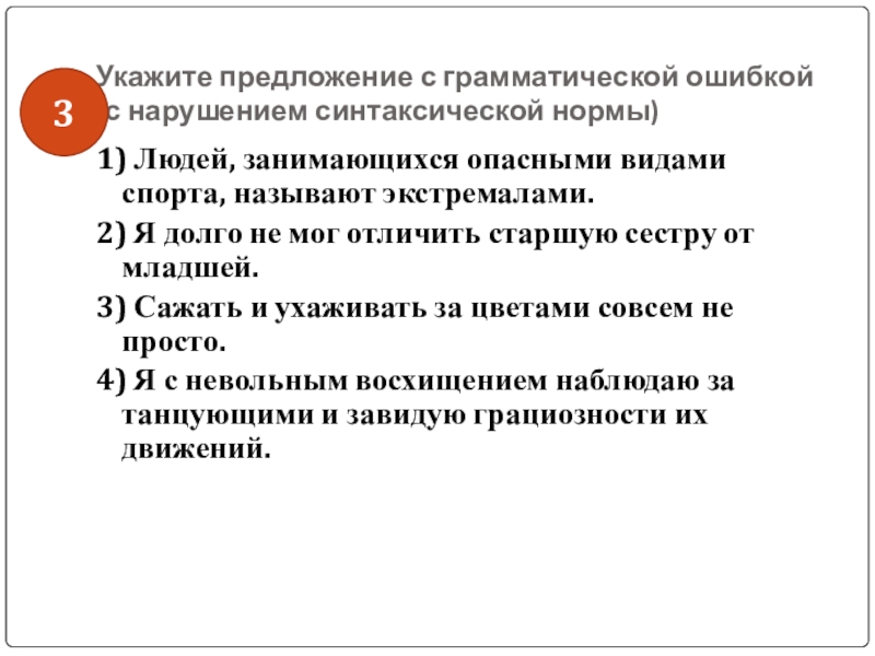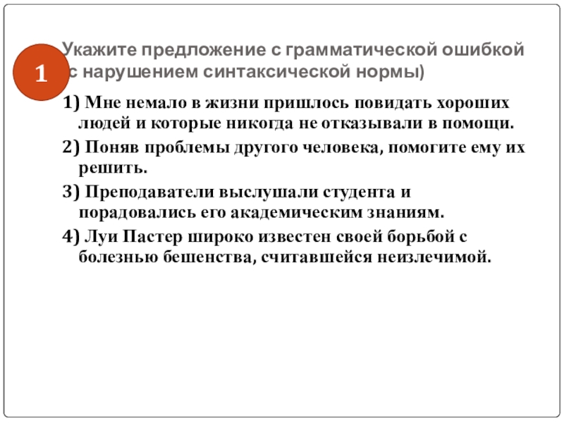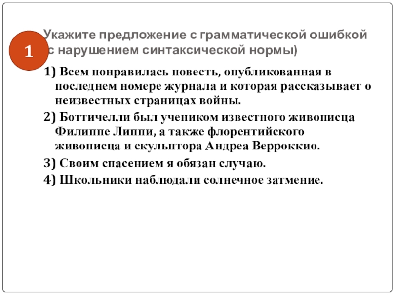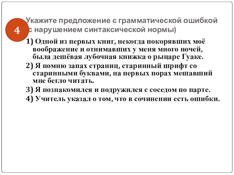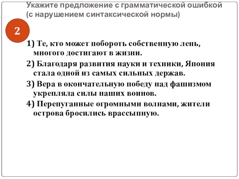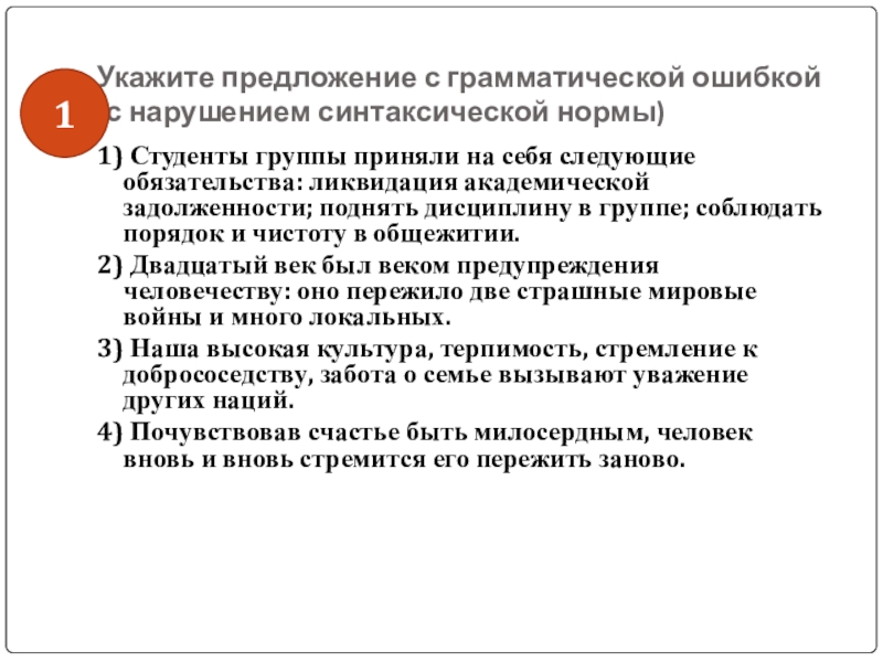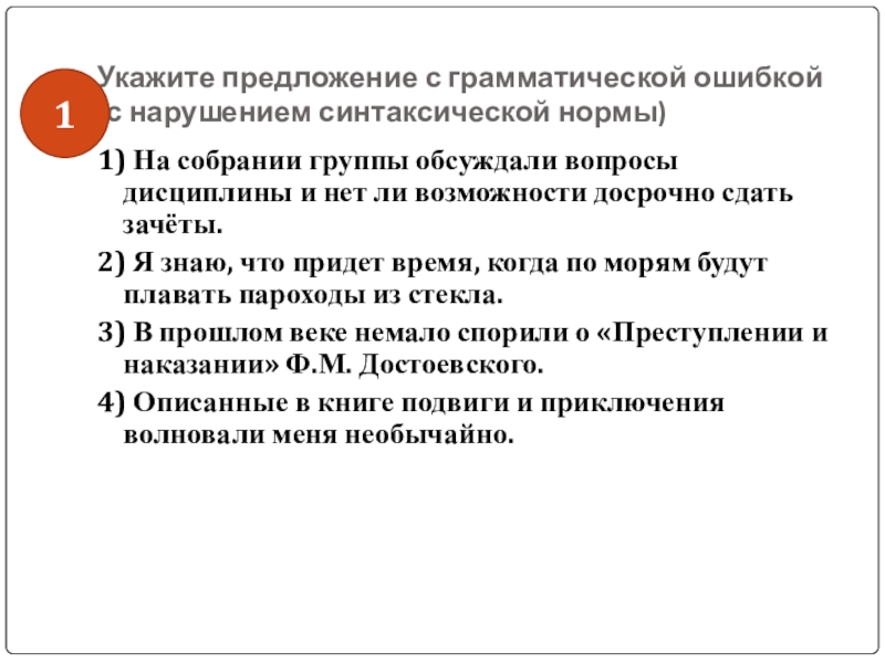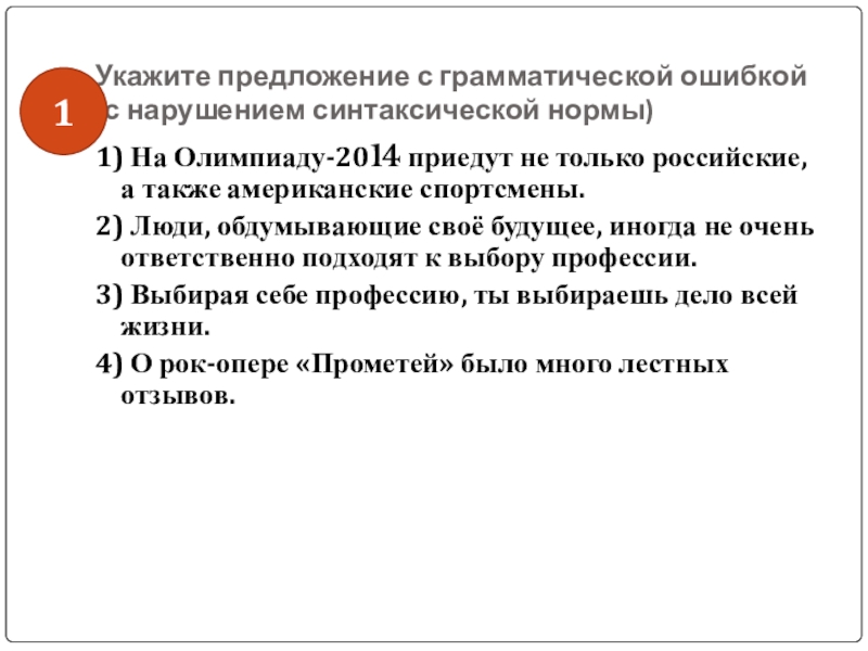 Слайд 44Укажите предложение с грамматической ошибкой