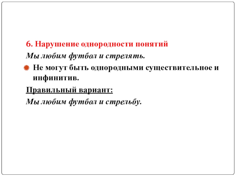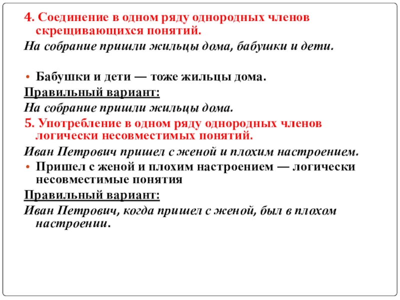 5. Употребление в одном ряду однородных членов логически несовместимых понятий.