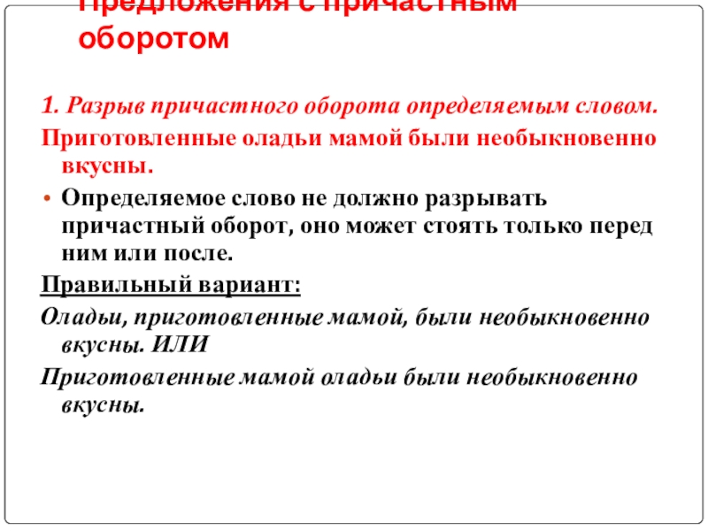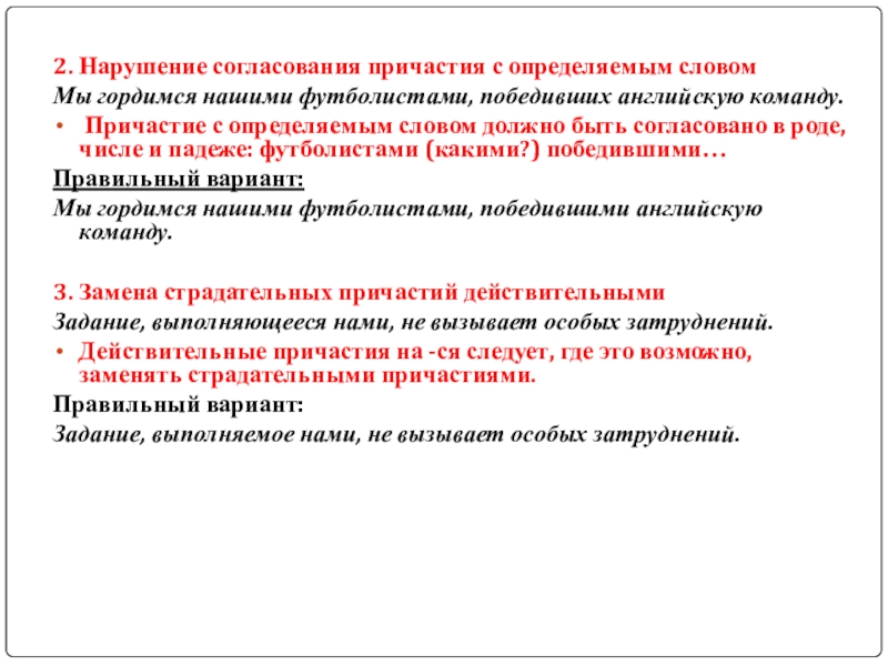 2. Нарушение согласования причастия с определяемым словом