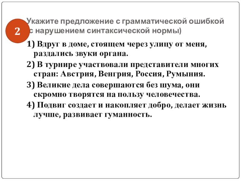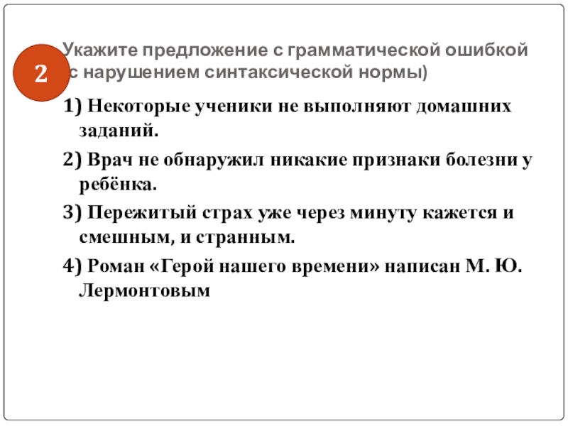 Слайд 36Укажите предложение с грамматической ошибкой
