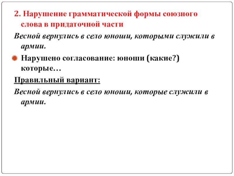 Слайд 152. Нарушение грамматической формы союзного слова в придаточной части