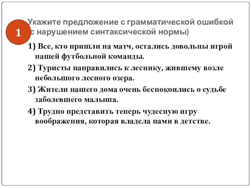 Слайд 30Укажите предложение с грамматической ошибкой