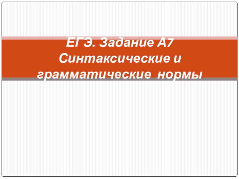 Слайд 1ЕГЭ. Задание А7 Синтаксические и грамматические нормы