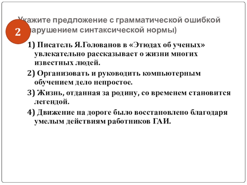 Слайд 45Укажите предложение с грамматической ошибкой