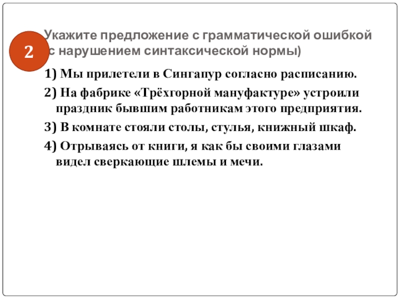Слайд 42Укажите предложение с грамматической ошибкой