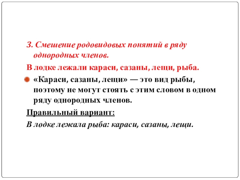 Слайд 53. Смешение родовидовых понятий в ряду однородных членов.