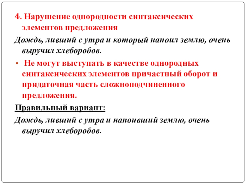 Слайд 134. Нарушение однородности синтаксических элементов предложения