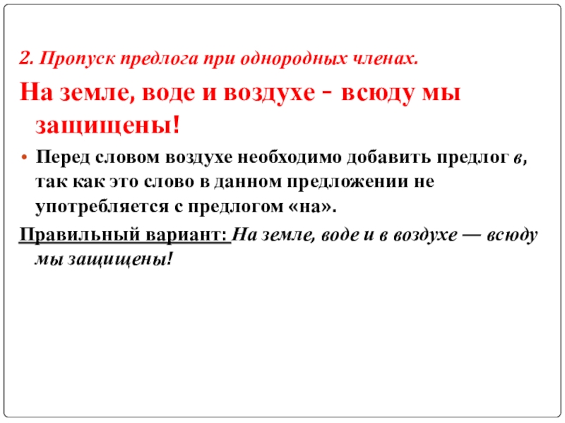 Слайд 42. Пропуск предлога при однородных членах.