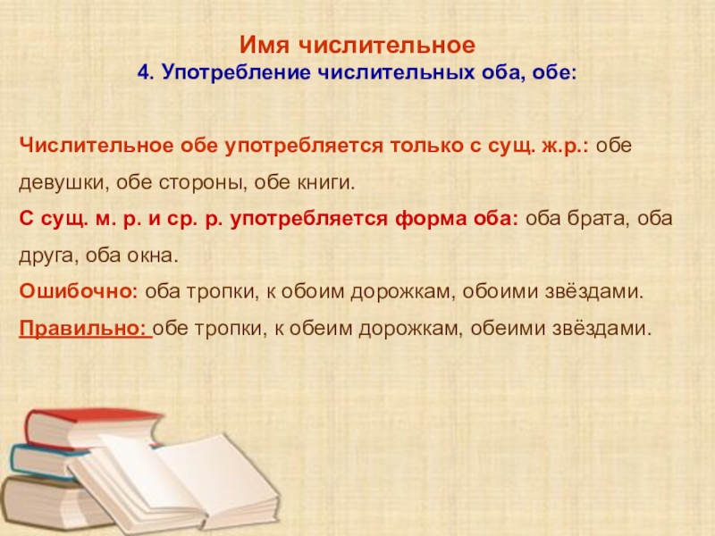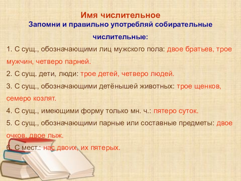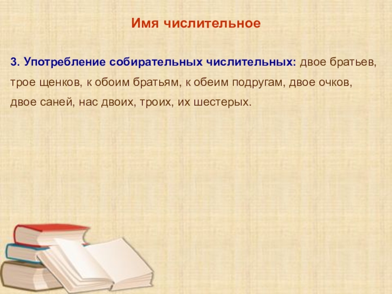 3. Употребление собирательных числительных: двое братьев, трое щенков, к обоим