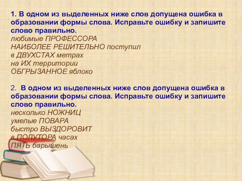Слайд 191. В одном из выделенных ниже слов допущена ошибка в образовании