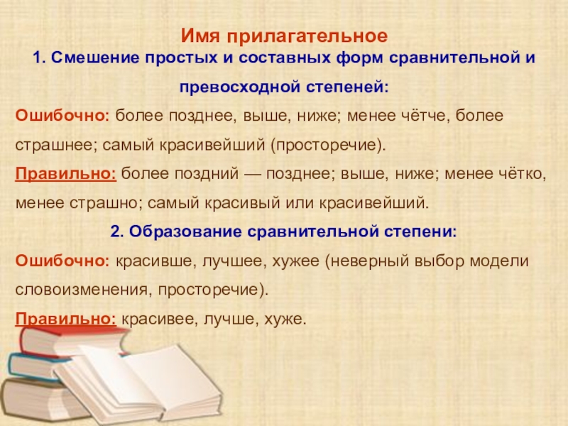 1. Смешение простых и составных форм сравнительной и превосходной степеней: