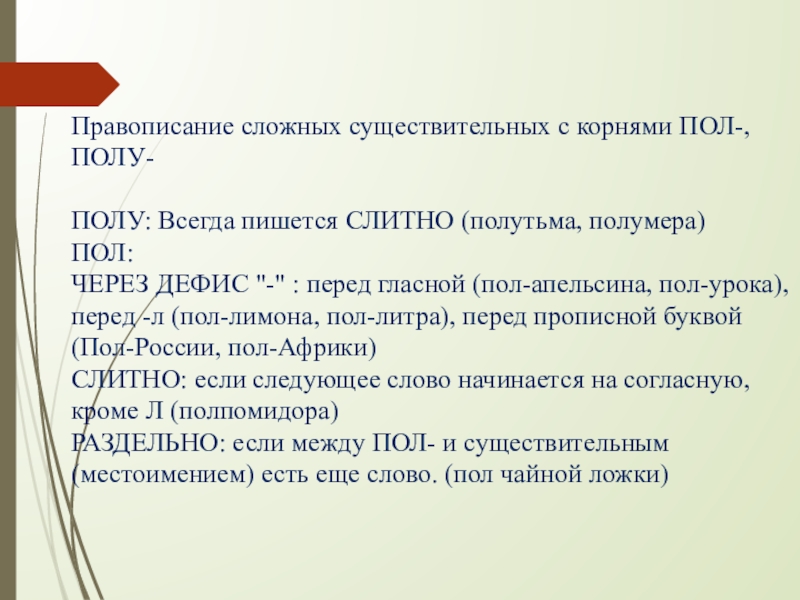 ·Правописание сложных существительных с корнями ПОЛ- и ПОЛУ-