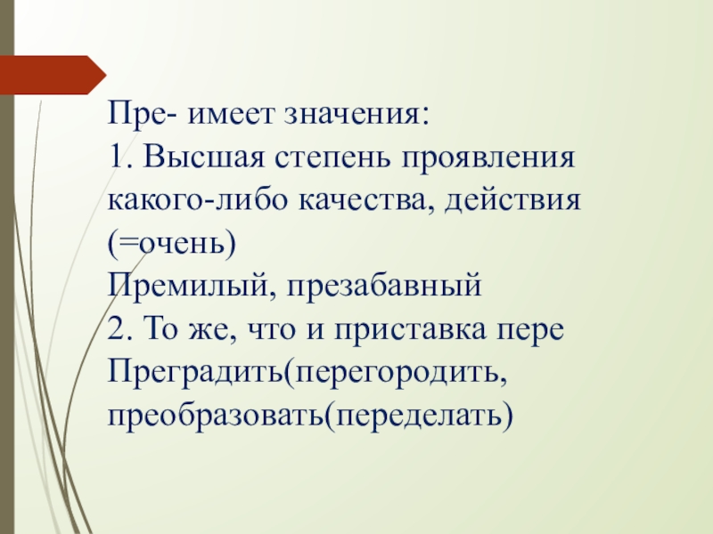 Слайд 6ПРЕ и ПРИ (написание зависит от значения)