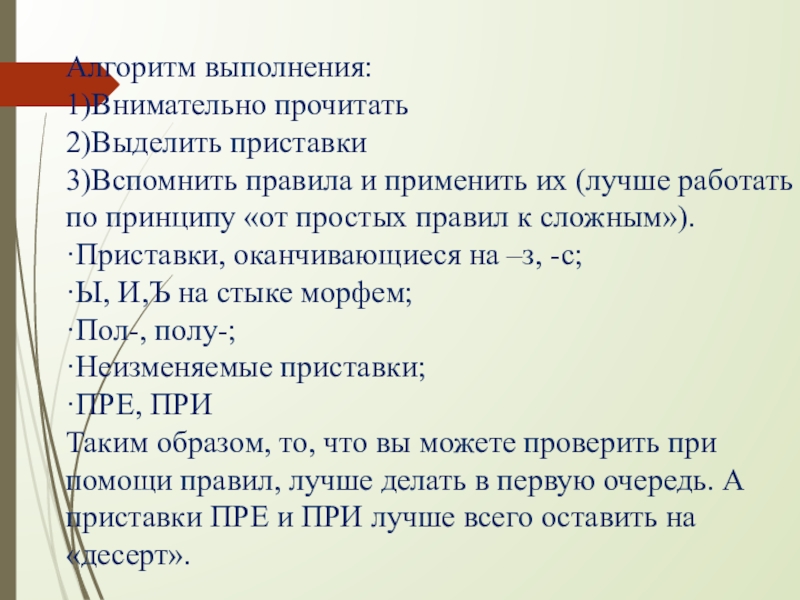 Таким образом, то, что вы можете проверить при помощи правил, лучше делать в первую очередь. А приставки ПРЕ и ПРИ лучше всего оставить на «десерт».