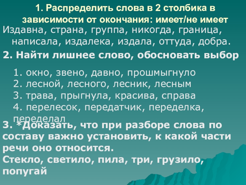 3. *Доказать, что при разборе слова по составу важно установить, к какой части речи оно относится.