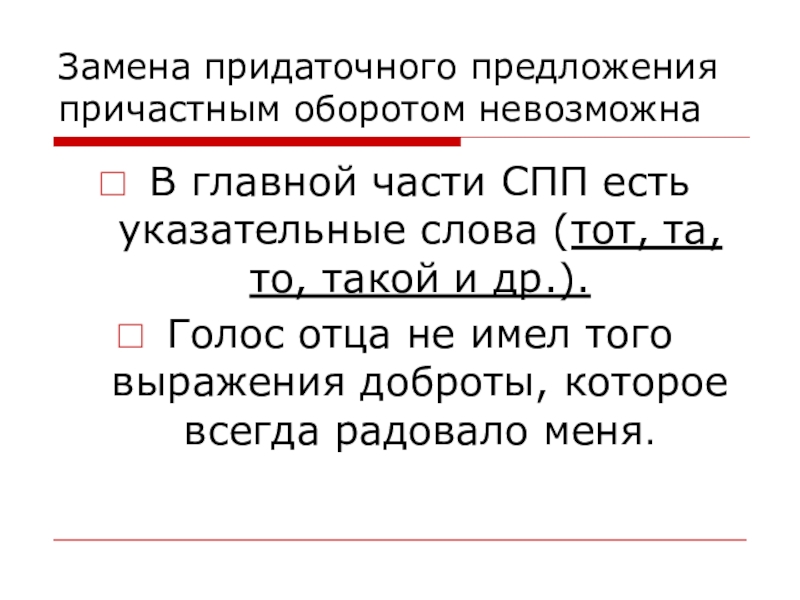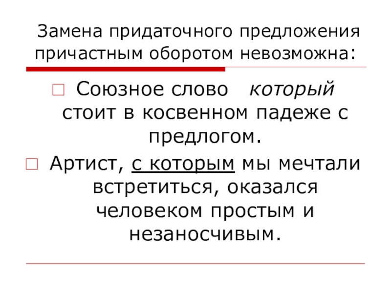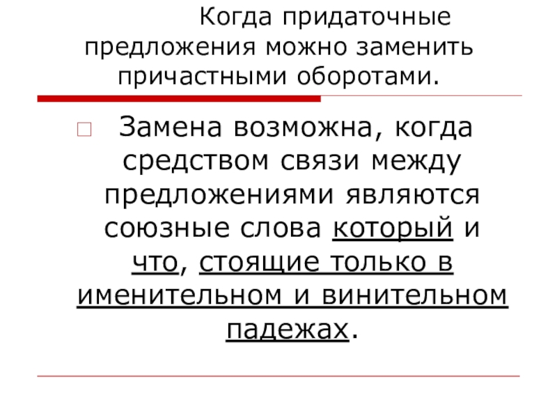 Замена возможна, когда средством связи между предложениями являются союзные слова который и что, стоящие только в именительном и винительном падежах.