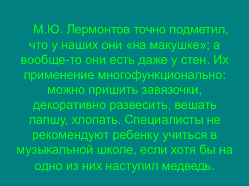 Слайд 16 М.Ю. Лермонтов точно подметил, что у наших они «на макушке»; а