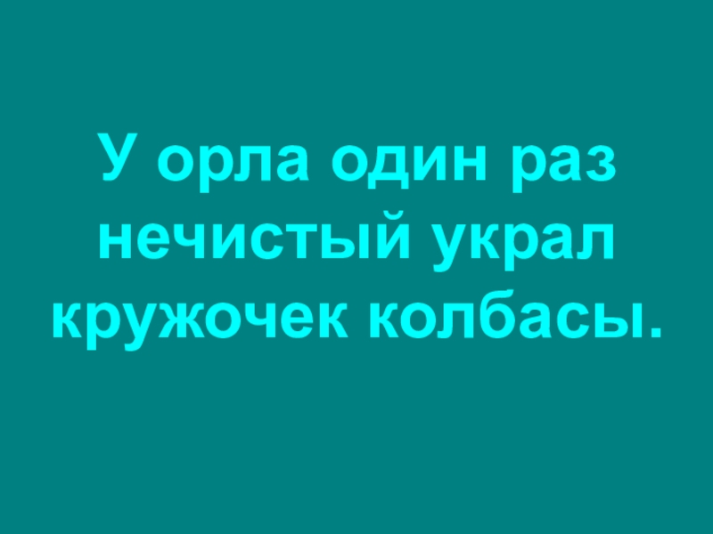 Слайд 14У орла один раз нечистый украл кружочек колбасы.