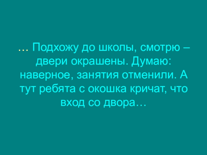 Слайд 7… Подхожу до школы, смотрю – двери окрашены. Думаю: наверное, занятия