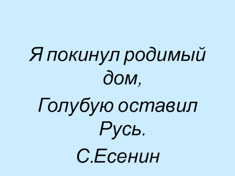 Я покинул родимый дом,Голубую оставил Русь.С.Есенин