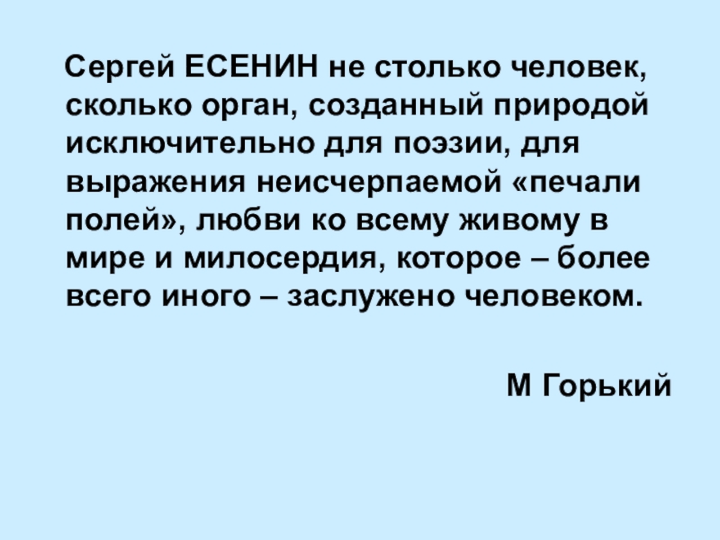 Сергей ЕСЕНИН не столько человек, сколько орган, созданный природой исключительно для поэзии, для выражения неисчерпаемой