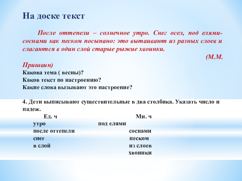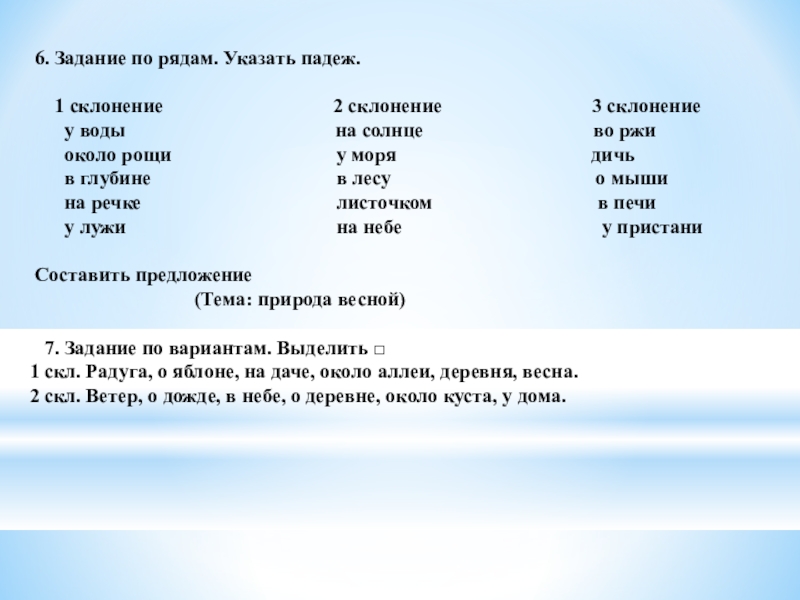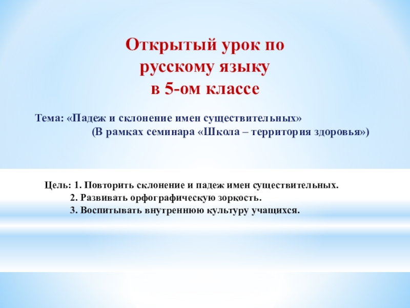Цель: 1. Повторить склонение и падеж имен существительных.