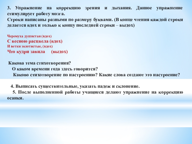 На этих уроках учащимся приходится много писать, быть предельно внимательными, и поэтому учитель-словесник должен уделять особое внимание здоровьесберегающим технологиям.