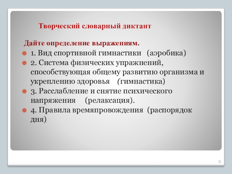 - Подчеркните в своем диктанте слова и словосочетания, значения которых направлены на укрепление здоровья человека.