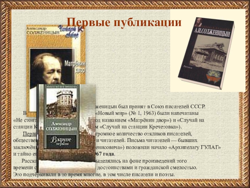 Первые публикации