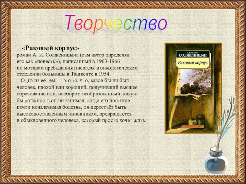 впечатления легли в основу повести «Раковый