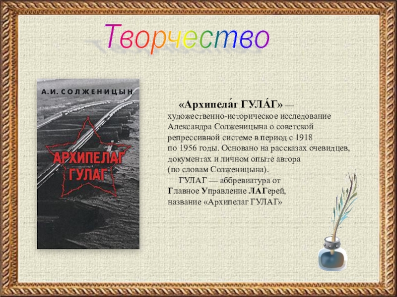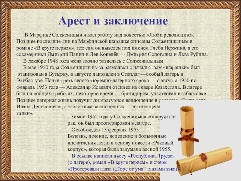 (о лагере), роман «В круге первом» и очерк