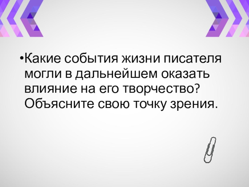 Слайд 7Какие события жизни писателя могли в дальнейшем оказать влияние на его