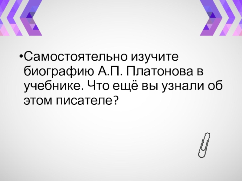 Слайд 8Самостоятельно изучите биографию А.П. Платонова в учебнике. Что ещё вы узнали