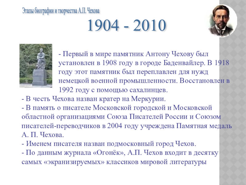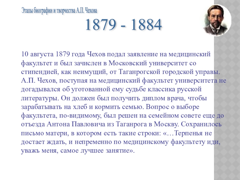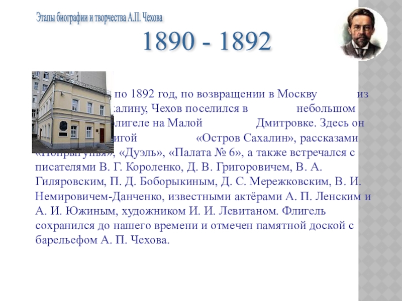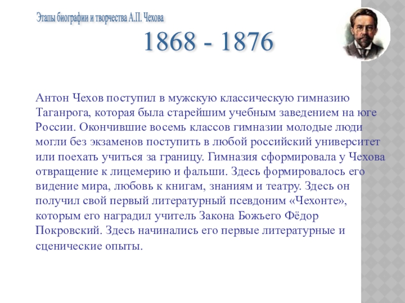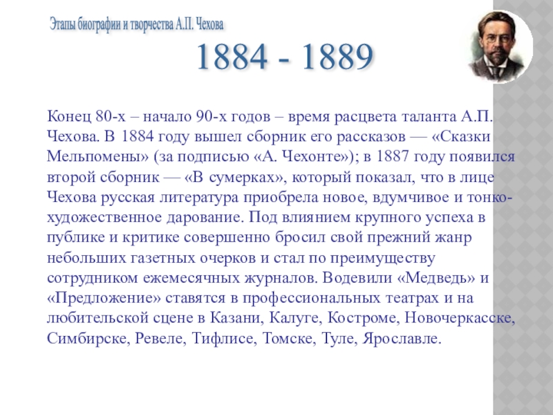 Этапы биографии и творчества А.П. Чехова